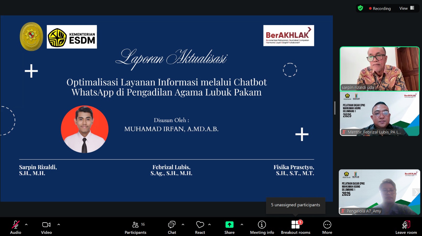 Lubuk Pakam (5 Desember 2025). Pengadilan Agama Lubuk Pakam kembali menunjukkan komitmennya dalam mendukung pengembangan kompetensi Aparatur Sipil Negara (ASN) melalui pelaksanaan Seminar Laporan Aktualisasi Calon Pegawai Negeri Sipil (CPNS) Golongan II, yang digelar secara daring.