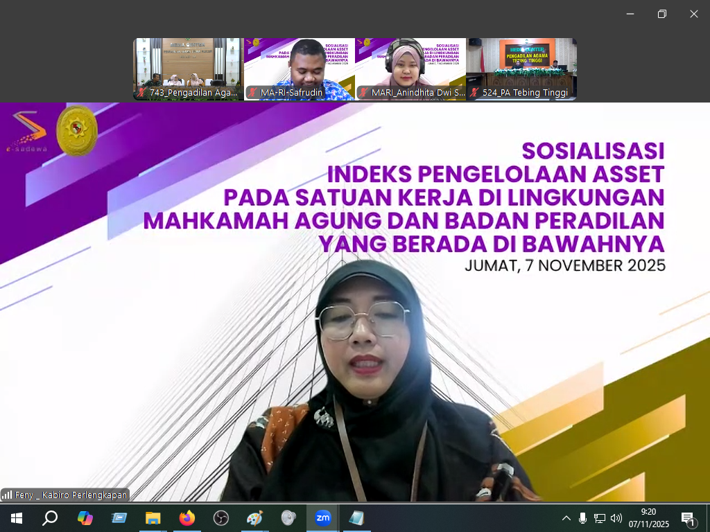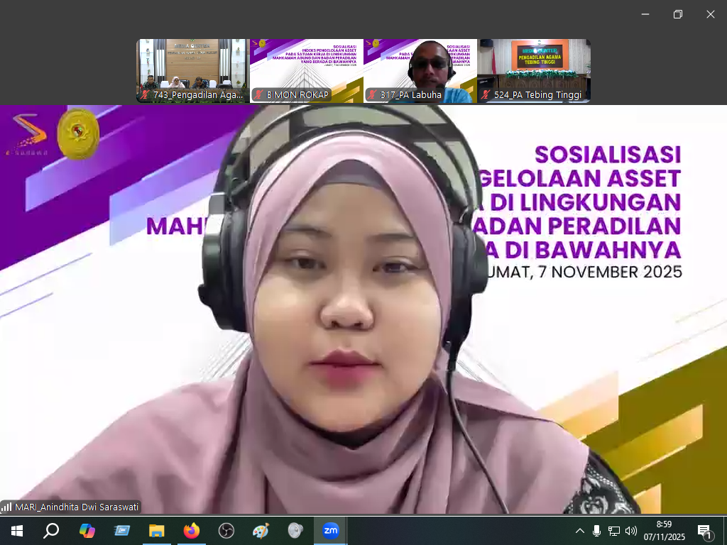 Lubuk Pakam (7 November 2025). Pengadilan Agama Lubuk Pakam mengikuti kegiatan Sosialisasi Indeks Pengelolaan Aset pada Satuan Kerja di Lingkungan Mahkamah Agung dan Badan Peradilan di Bawahnya yang diselenggarakan secara daring di ruang Media Center PA Lubuk Pakam, pada Kamis (7/11/2025).