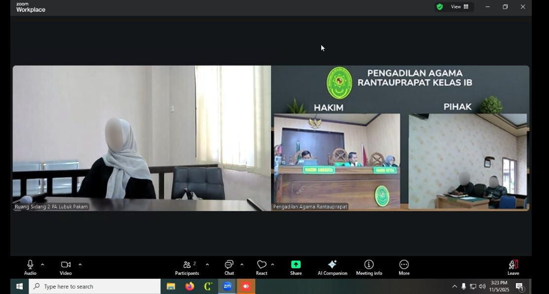 Lubuk Pakam (5 November 2025). Pengadilan Agama (PA) Lubuk Pakam bekerja sama dengan Pengadilan Agama (PA) Rantauprapat melaksanakan sidang teleconference perkara Penetapan Ahli Waris. Sidang ini dilaksanakan berdasarkan surat Plh. Panitera PA Rantauprapat Nomor 281/PAN.PA.W2-A4/HK2.6/XI/2025 tanggal 3 November 2025 perihal Permohonan Persidangan melalui Telekonferensi atas perkara Nomor 187/Pdt.G/2025/PA.Rap yang terdaftar di PA Rantauprapat.