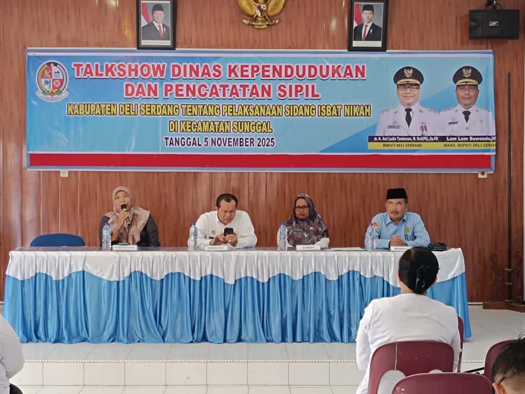 Lubuk Pakam (5 November 2025). Pengadilan Agama (PA) Lubuk Pakam turut berpartisipasi dalam kegiatan Sosialisasi dan Validasi Data Peserta Pelayanan Terpadu Sidang Itsbat Nikah yang dilaksanakan di Kantor Camat Sunggal, Kabupaten Deli Serdang. Kegiatan ini dihadiri oleh Sekretaris PA Lubuk Pakam, Dela Krisna Beti, S.H., bersama dengan Kepala Dinas Kependudukan dan Catatan Sipil (Dukcapil) Kabupaten Deli Serdang, Drs. H. Misran Sihaloho, M.Si., Kepala KUA Kecamatan Sunggal, Ahmad Jazuli Daulay, serta Sekretaris Camat Sunggal.