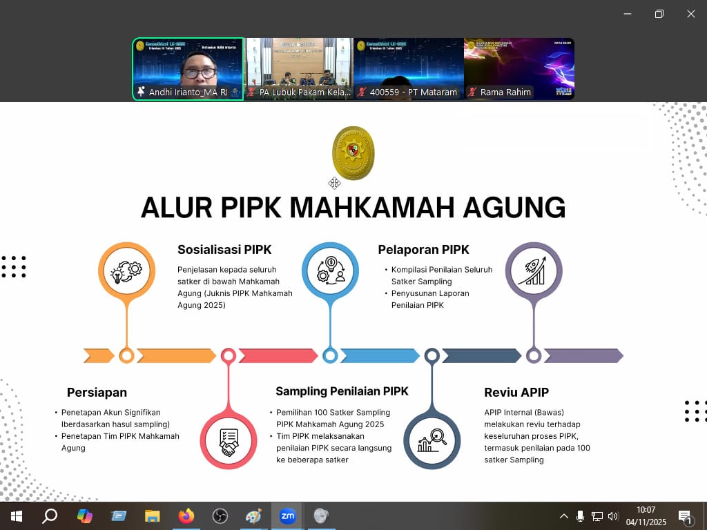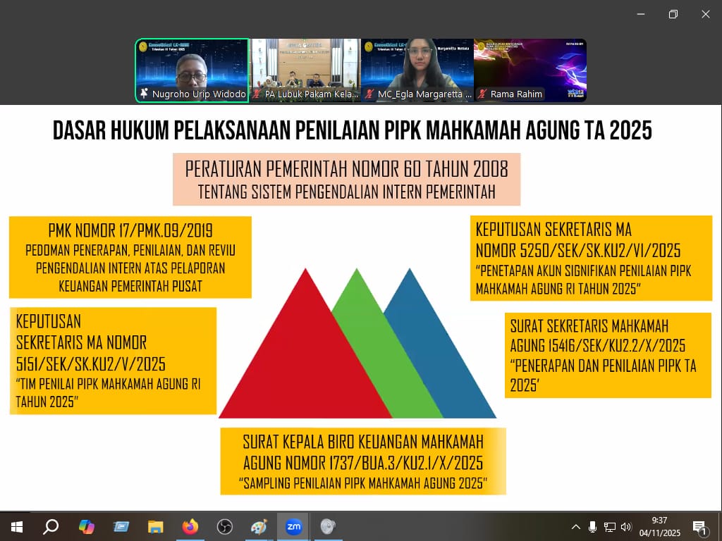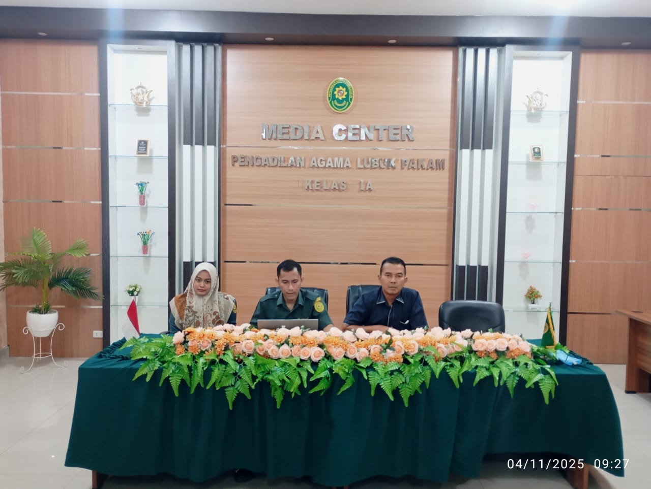 Lubuk Pakam (4 November 2025). Tim Keuangan Pengadilan Agama (PA) Lubuk Pakam mengikuti kegiatan Penyampaian Teknis Pelaksanaan Penilaian Pengendalian Intern atas Pelaporan Keuangan (PIPK) Mahkamah Agung secara daring di Ruang Media Center PA Lubuk Pakam.
