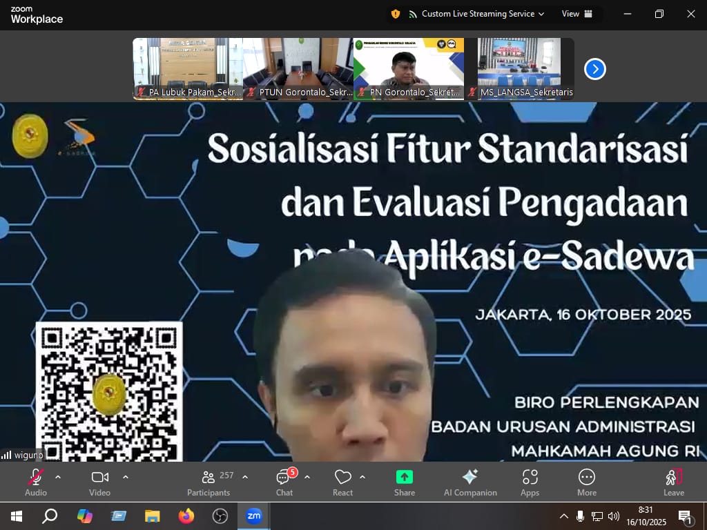 Lubuk Pakam (16 Oktober 2025). Pengadilan Agama Lubuk Pakam mengikuti Sosialisasi Fitur Standarisasi dan Evaluasi Pengadaan Menu Pengadaan Barang pada Kamis, 16 Oktober 2025.