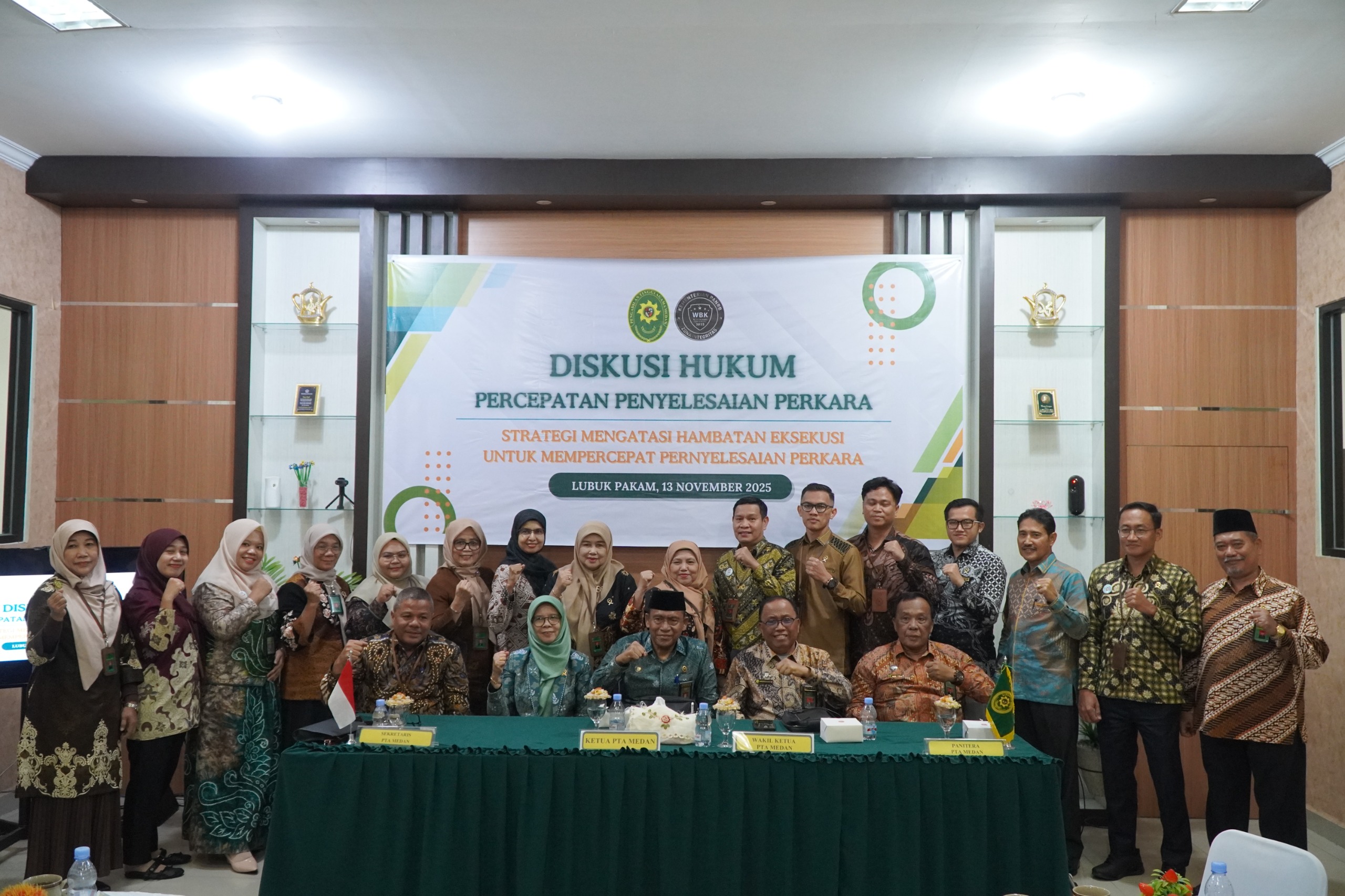 Lubuk Pakam (13 November 2025). Pengadilan Agama (PA) Lubuk Pakam menjadi tuan rumah pelaksanaan Diskusi Hukum yang diinisiasi oleh Pengadilan Tinggi Agama (PTA) Medan. Kegiatan ini diikuti oleh enam Pengadilan Agama di wilayah I PTA Medan, yaitu PA Lubuk Pakam, PA Medan, PA Sei Rampah, PA Stabat, PA Binjai, dan PA Tebing Tinggi.