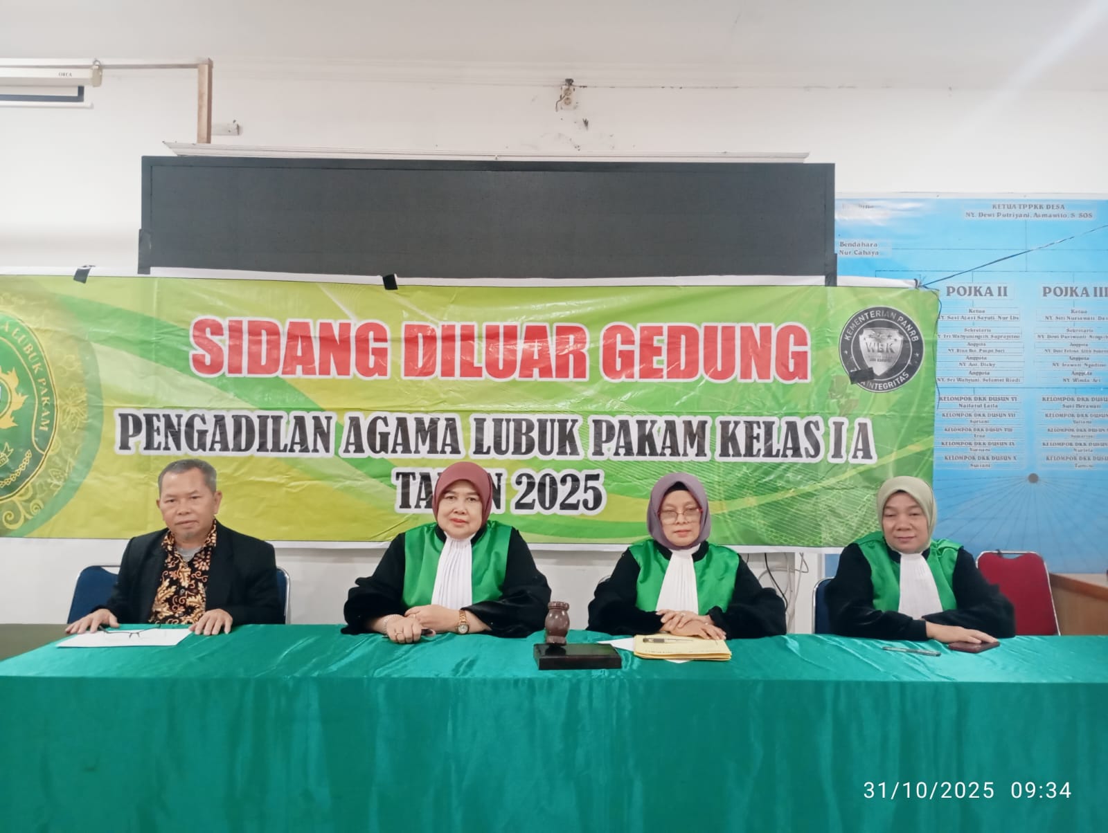 Lubuk Pakam (31 Oktober 2025). Pengadilan Agama (PA) Lubuk Pakam kembali melaksanakan kegiatan sidang di luar gedung sebagai bagian dari upaya meningkatkan akses masyarakat terhadap keadilan. Kegiatan ini menjadi pelaksanaan terakhir sidang di luar gedung untuk tahun 2025 dan digelar di Kantor Camat Sunggal serta Kantor Desa Saentis, Kabupaten Deli Serdang.