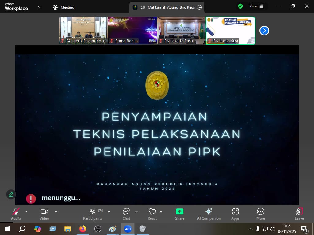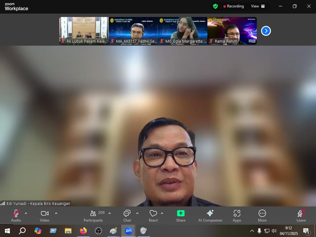 Lubuk Pakam (4 November 2025). Tim Keuangan Pengadilan Agama (PA) Lubuk Pakam mengikuti kegiatan Penyampaian Teknis Pelaksanaan Penilaian Pengendalian Intern atas Pelaporan Keuangan (PIPK) Mahkamah Agung secara daring di Ruang Media Center PA Lubuk Pakam.