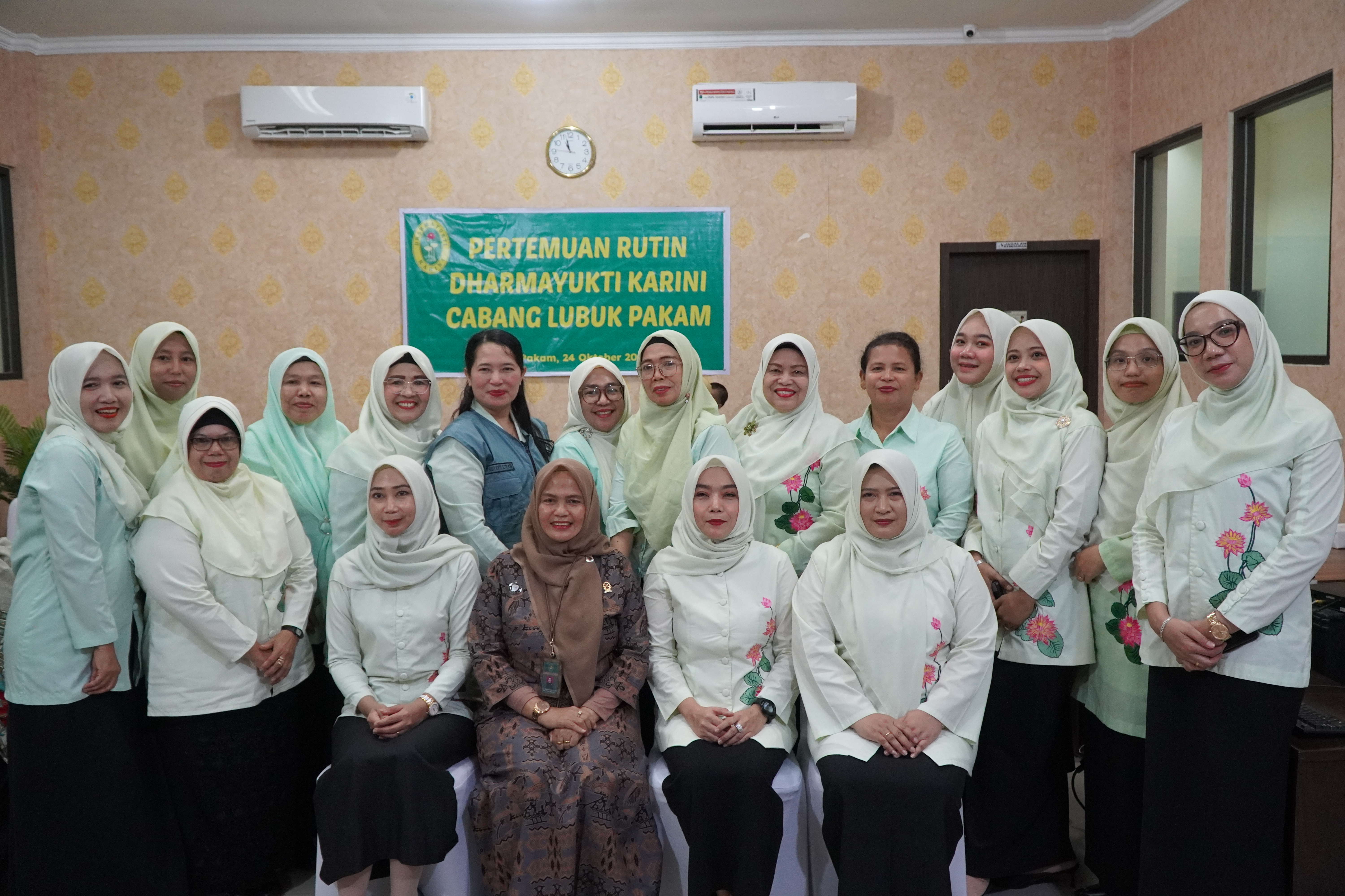 Lubuk Pakam (24 Oktober 2025). Dharmayukti Karini Cabang Lubuk Pakam menggelar pertemuan rutin pada Kamis, 24 Oktober 2025, bertempat di Ruang Media Center Pengadilan Agama Lubuk Pakam. Kegiatan ini diikuti oleh para pengurus dan anggota Dharmayukti Karini Cabang Lubuk Pakam dengan mengenakan seragam Teratai dan rok hitam.