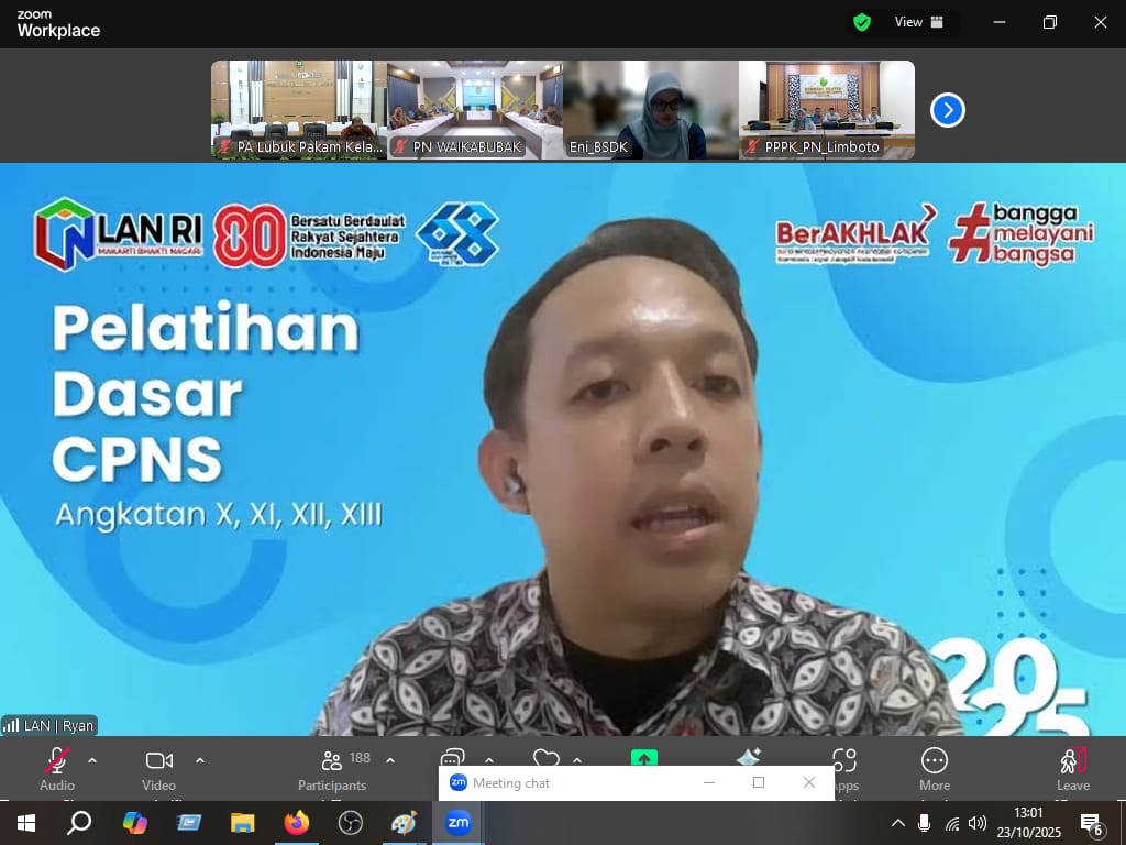 Lubuk Pakam (24 Oktober 2025). Pengadilan Agama Lubuk Pakam kembali menunjukkan komitmennya dalam mendukung pengembangan kompetensi Aparatur Sipil Negara (ASN) melalui pelaksanaan Seminar Rancangan Aktualisasi Calon Pegawai Negeri Sipil (CPNS) Golongan II, yang digelar secara daring.
