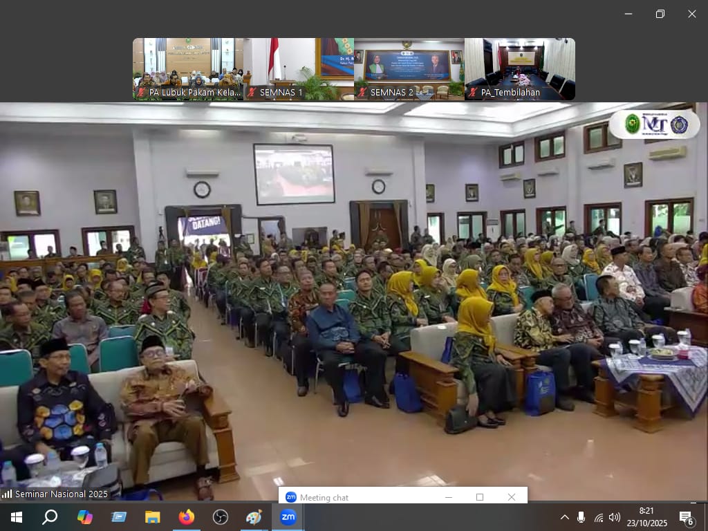 Lubuk Pakam (23 Oktober 2025). Pengadilan Agama (PA) Lubuk Pakam mengikuti Seminar Nasional bertema “Mahkamah Islam Tinggi (MIT) Pembuka Tabir Sejarah Eksistensi Peradilan Agama Dalam Reformasi Hukum dan Peradilan di Indonesia” yang diselenggarakan oleh Pengadilan Tinggi Agama Semarang bekerja sama dengan Universitas Muhammadiyah Surakarta. Kegiatan ini dilaksanakan secara daring melalui aplikasi Zoom Meeting.